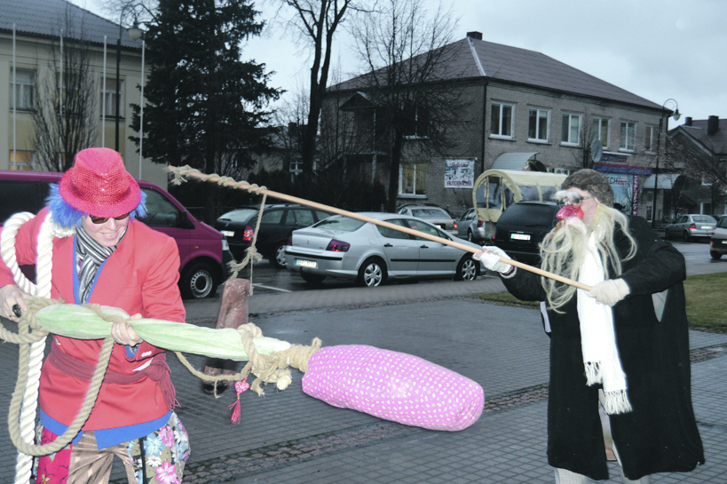 Pliaupiant lietui pamažu iš visų pakampių antradienį kas būreliais, kas po vieną čigonai, raganos ir kiti persirengėliai traukė tiesiai į aikštę. Buvo ir drąsesnių, „kibitka“ atvažiavusių, kurie puikuodamiesi gražiais žirgais suko ratą po rato miesto gatvėmis.