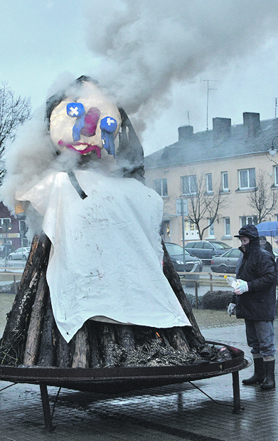 Lašininis gal dėl to, kad žiema pati šiemet be kovos pasitraukė, nebuvo itin atkaklus. Susitaikęs su likimu ramiai žiūrėjo, kaip dega blogybes simbolizuojanti Morė.