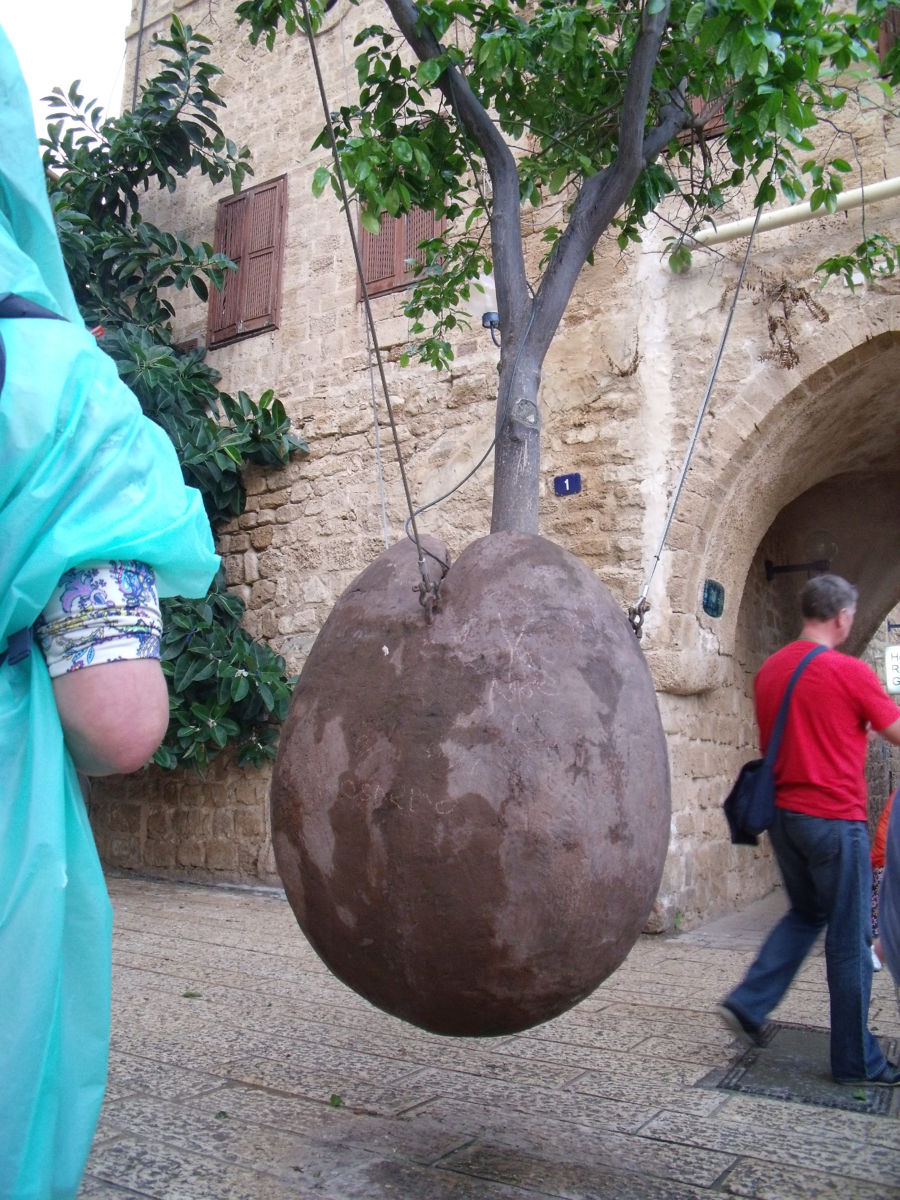O vieno namo kieme galima pamatyti netikėtą reginį, vieną iš Jafos simbolių – ant lynų kabančiame kiaušinio formos vazone auga ir vaisius veda apelsinmedis. Pasakojama, kad medį šioje vietoje norėjo pasodinti namo gyventojai, tačiau žemė priklausė municipalitetui, o jis buvo išleidęs nurodymą, kad miesto žemėje vaismedžių sodinti negalima. Išradingi gyventojai pasodino medį taip, kad žemės jis neliestų.